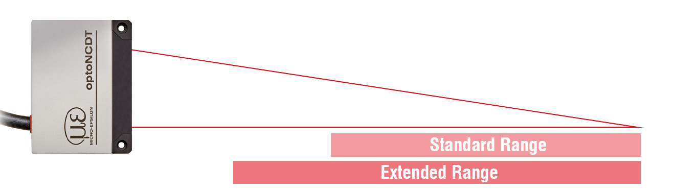 optoNCDT 5500 -anturit ovat saatavilla erilaisilla mittausalueilla. Tavallisen mittausalueen lisäksi voidaan käyttää pidennettyä mittausaluetta, joka laajentaa käyttömahdollisuuksia huomattavasti. IP67-suojausluokan ja hyvän ympäristön valon sietokyvyn ansiosta laserantureita voidaan käyttää myös haastavissa olosuhteissa.