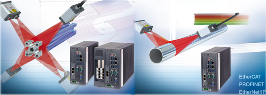 scanCONTROL sensors are available with a range of line widths from 25 mm to 788 mm, however the number of measuring points is fixed across the line. Therefore the wider the line the greater the spacing in the x direction between points. Having the ability to arrange multiple sensors in a row and stitching those lines together allows for improved point spacing and/or improved coverage of complex geometries, for example 360° coverage of extrusions.